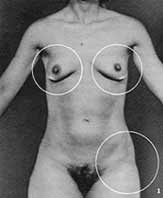 It is not necessary to have nursed a child, or even to have been pregnant to have breast problems. The case of Judy, another of my patients, represents one example. Judy’s breasts had been an embarrassment to her since her early teen years, because they were not the same size. The right breast was noticeably smaller than the left. As a teenager, Judy had padded her first bras to compensate for the problem. Now that she was a 26-year-old successful saleswoman, she was even more concerned about her appearance in the corporate world, since she dealt with appearance-conscious executives every day For Judy, what had been a personal emotional problem had become a sore point for practical reasons in her competitive professional world.
