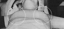1. Diagram indicates transplanting fat through small incisions in the breast.
