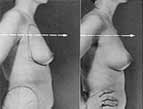 During liposuction of Judy’s iliac area (the “love handles” flab) and her bulging abdomen, a total of 2000 cc of fat was removed. The right breast only was injected with 200 cc of fat cells. As I had predicted, about 25 percent of the injected cells were absorbed, so when her recovery period was complete, her right breast was actually enlarged by about 150 cc of fat cells.