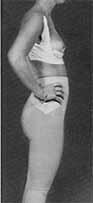 Although Judy originally consulted me to ask about liposuction on her bulging hips and her flabby, fat abdomen, she too was delighted to hear that lipoinjection offered help for her problem. At her second visit, she brought in snapshots of herself as an adolescent in a bathing suit – embarrassed at being photographed, and trying to hide behind a tree to conceal her uneven breasts.