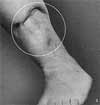 - Traumatic scars of the ankle, showing avulsion of tissue.