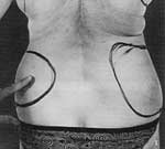Don, a reporter on a suburban newspaper, came to The Liposuction Institute asking if liposuction of his flanks could help his condition. Don was sensitive about the large, sagging bulges-“rubber tires,” he called them. The striking thing about him was that he had athletically-developed arms and legs. When I questioned him about his history of body development, he said he had been bothered by “love handles” ever since puberty. Despite his extensive jogging, swimming, body building, and even basketball this playing, he could never get rid of them. Liposuction seemed to be the last resort, he said.