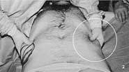1-4. Photos show a male patient during liposuction surgery to remove fatty deposits on the flanks, or love handles.