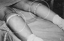 - During surgery, when one leg has been treated, the tape measure Indicates the difference in circum- ference: more than two Inches Oust before the doctor proceeds to complete the treatm ent on the second leg.).
