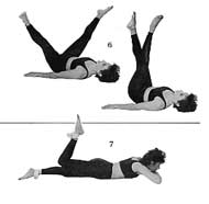 5. Universal thigh rotation. Wearing ankle weights, lie down. Do a leg lit one leg at a time … first, straight out; then, to the side; then, to the return position, and finally, to the floor. Do this exercise 10 times.