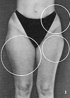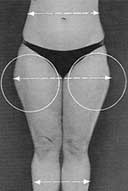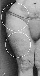 Other patients with fat deposits that were not as extensive have received liposuction only of the affected parts of the thighs. Michelle, a successful saleswoman for a computer store, came to me wanting liposuction for her bulging thighs. However, her condition was not as extreme as Christine’s. I removed a total of 1000 cc (33 oz.) from the fat pads on the front of her thighs, and that was the extent of the surgical procedure she needed. You may already have a pretty good idea of what areas are the likely ones for liposuction in your own. Because every case is unique, however, you will be able to get exact details and make plans only after consultation with your doctor, who can help you make a realistic decision.