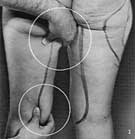 - Pattern of marks show the discoloration of subdermal strokes during surgery.